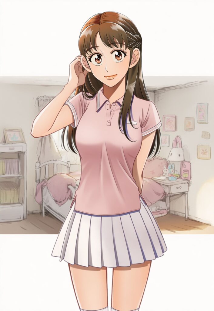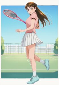 綾菜はパパの頼みで、テニスウェアに着替えた。