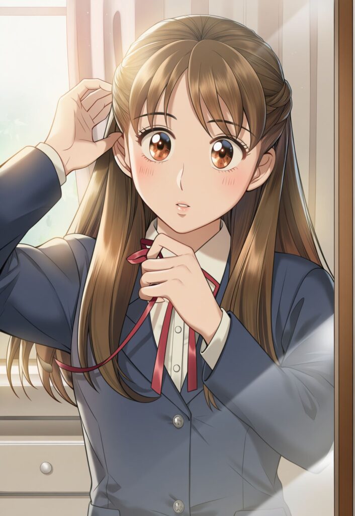 桂木 彩菜(かつらぎ あやな) 青葉高校2年 新体操部 得意科目:英語・音楽 性格:だれにでもやさしくて明るい・すこし天然 鏡の前で身だしなみのチェック。 朝食はハムエッグにトーストとサラダを食べた。 階段の下から「早くしないと遅刻するわよ...