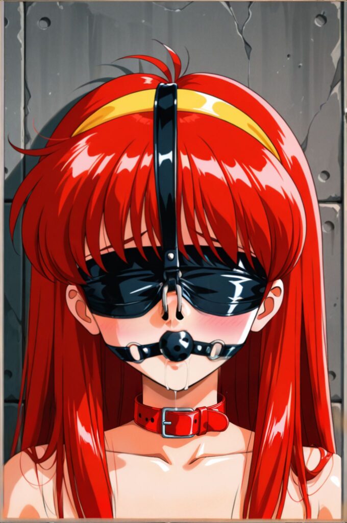 目隠しと鼻フック、ギャグボールという文中の描写をもとに作成しました。ギャグボールを咥えているとしゃべれないので、二枚目のセリフは本来であればおかしいのですが、マッチ度合いと背徳感が最高に仕上がったと思います。
