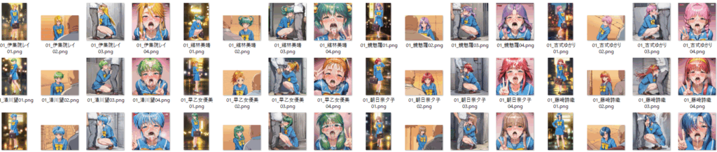 13キャラx6枚(69・騎乗位・正常位・寝バック・中出し・事後)