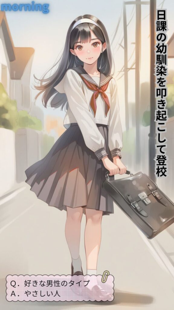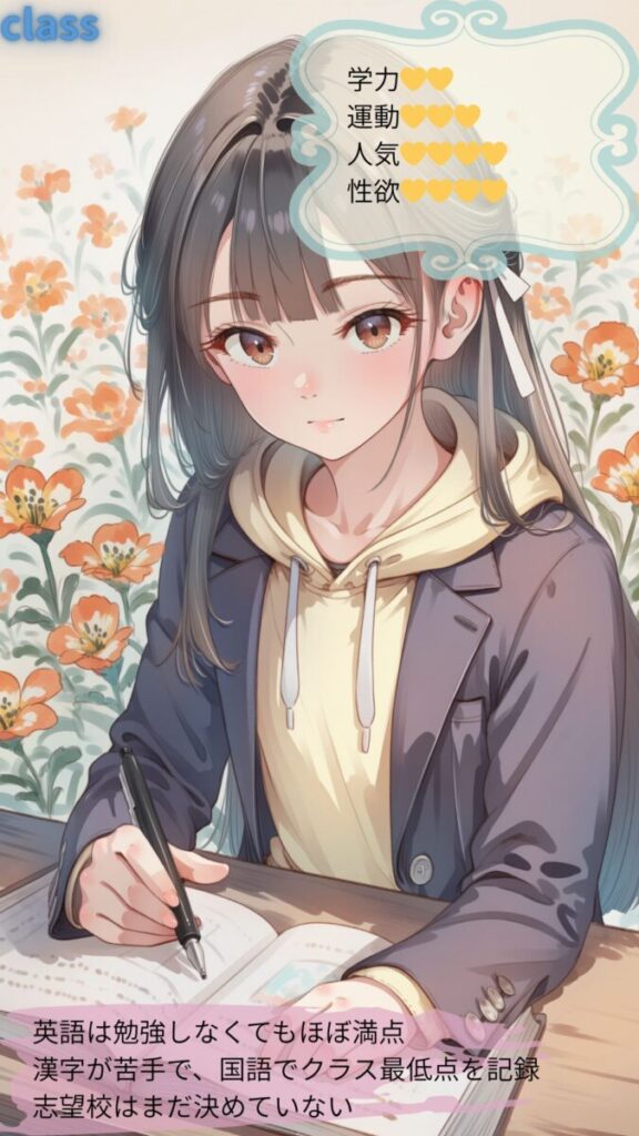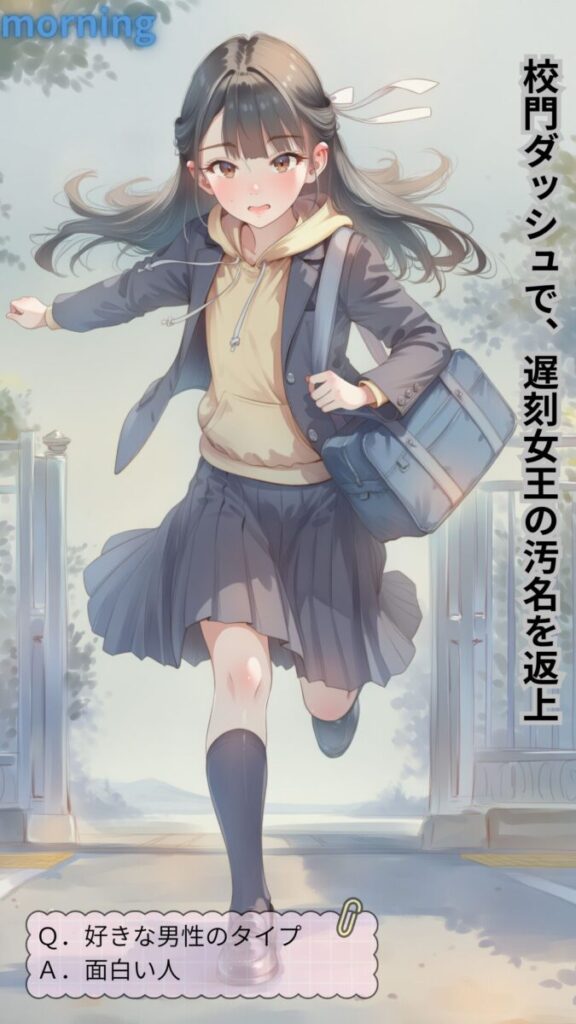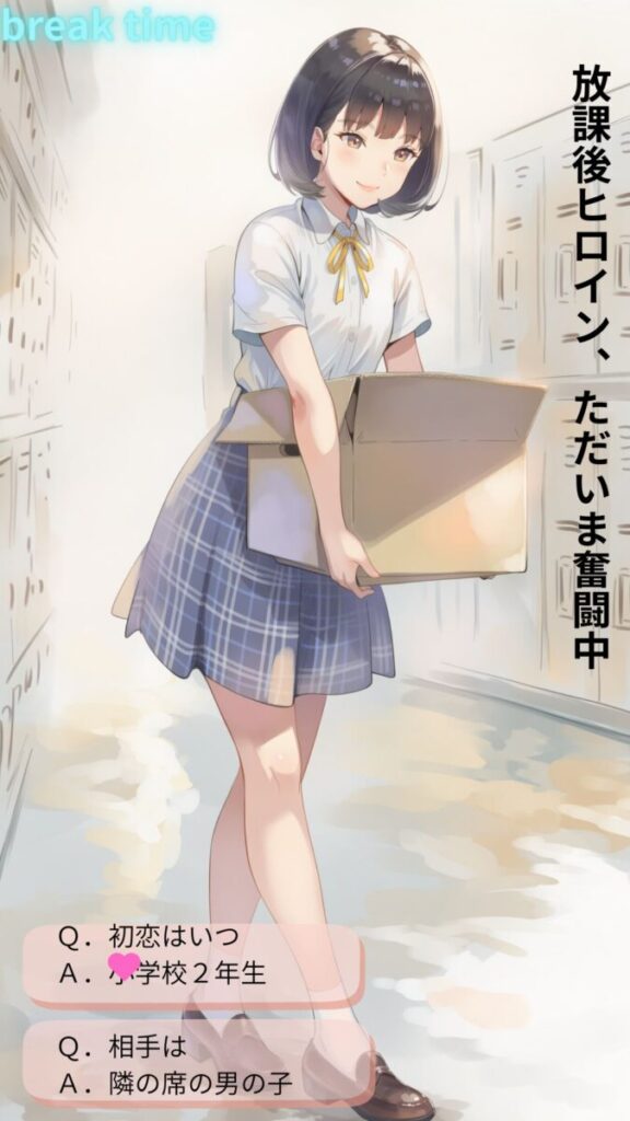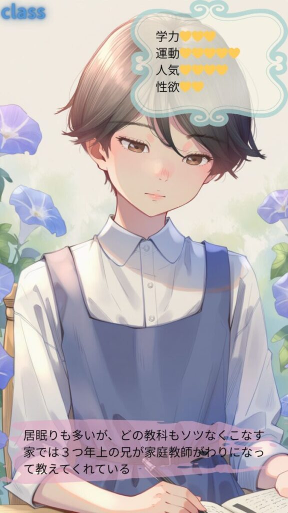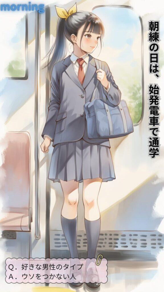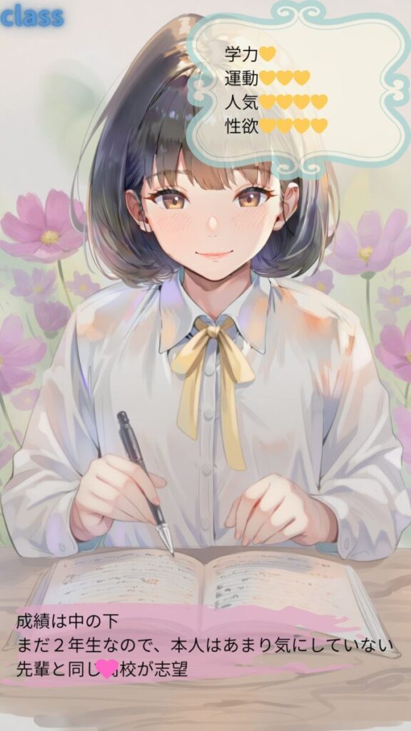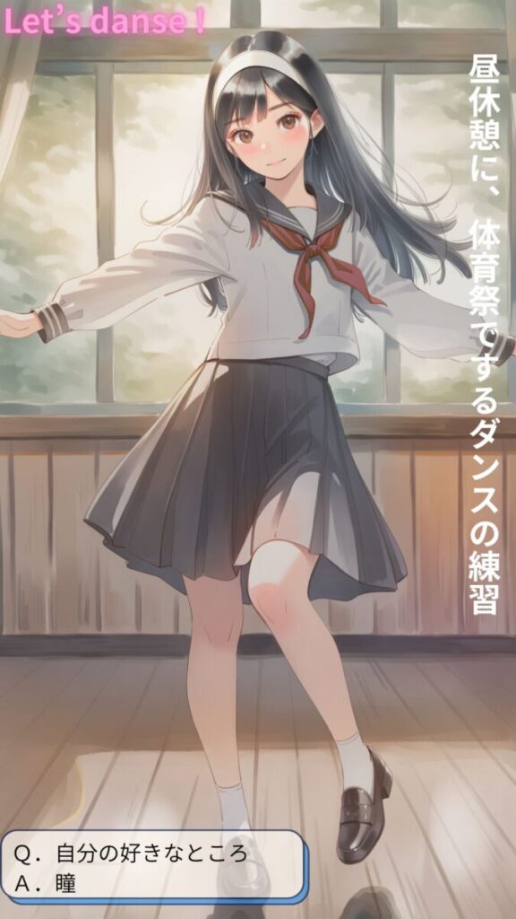 シーンの内訳: 朝の準備・登校・授業・体操服・体育・レッツダンス!・スクール水着・水泳・放課後・神風(パンチラ)・部活1・部活2・制服デート・オンラインチャット1(スマホ)・オンラインチャット2(自撮り)